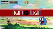 Goopy tirando seu "chapéu" na introdução da batalha.