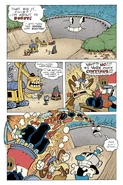 Cuphead and Mugman are following music that leads down a well, until a big ghost whack them from behind and makes them fall into the well itself. That's when they find a bunch of Spectre Syndicate dancing to music. The Spectre Syndicates then notice them and start to chase the brothers. Eventually Cuphead and Mugman lose them and find a door, in which they think is an exit. Unfortunately, they find Blind Specter behind there and slam it shut, before finding another door with the Conductor and Head of the Train behind. Cuphead then finds a door, with the word "VOL 2" on it and opens it, unleashing a wave of fire, several demons, and the title for the comic.