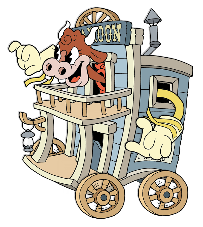 - Additionally, the way the snake oil initially arcs backwards when shot is a reference to Steamboat Willie, in which Pete's spit shares a similar arc.