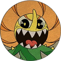 • Pink seeds create floating Baby Toothy Terrors. These enemies are orange and have green leaves (much like Cagney), and also spawn from vines with buds. They fly to the top of the screen and move horizontally across, making it more difficult to jump over attacks on the floating platforms. Once in a while, these enemies open up to reveal mouths and shoot out pink, parryable seeds, during which they are vulnerable and can be destroyed. Even though they can be shot and destroyed, it is recommended to parry their seeds before they land, as they can be stressful to deal with and it will prevent them from spawning, in addition to filling up your super meter.