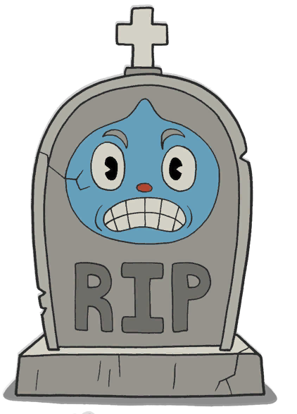 After taking enough damage, the headstone is torn in half and wiggles while Goopy's inscription appears deceased.