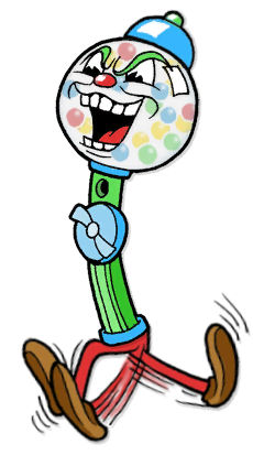 Greedy Gumball is a minor boss fought in the Sugarland Shimmy level of Inkwell Isle Two, and one of the several subjects summoned by the level's primary boss Baroness Von Bon Bon.