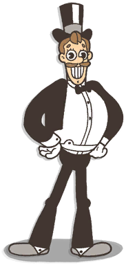 The as-yet unnamed husband of Sally Stageplay (aka. Mr. Stageplay) is a character and a secret optional boss in the Dramatic Fanatic level of Inkwell Isle Three.